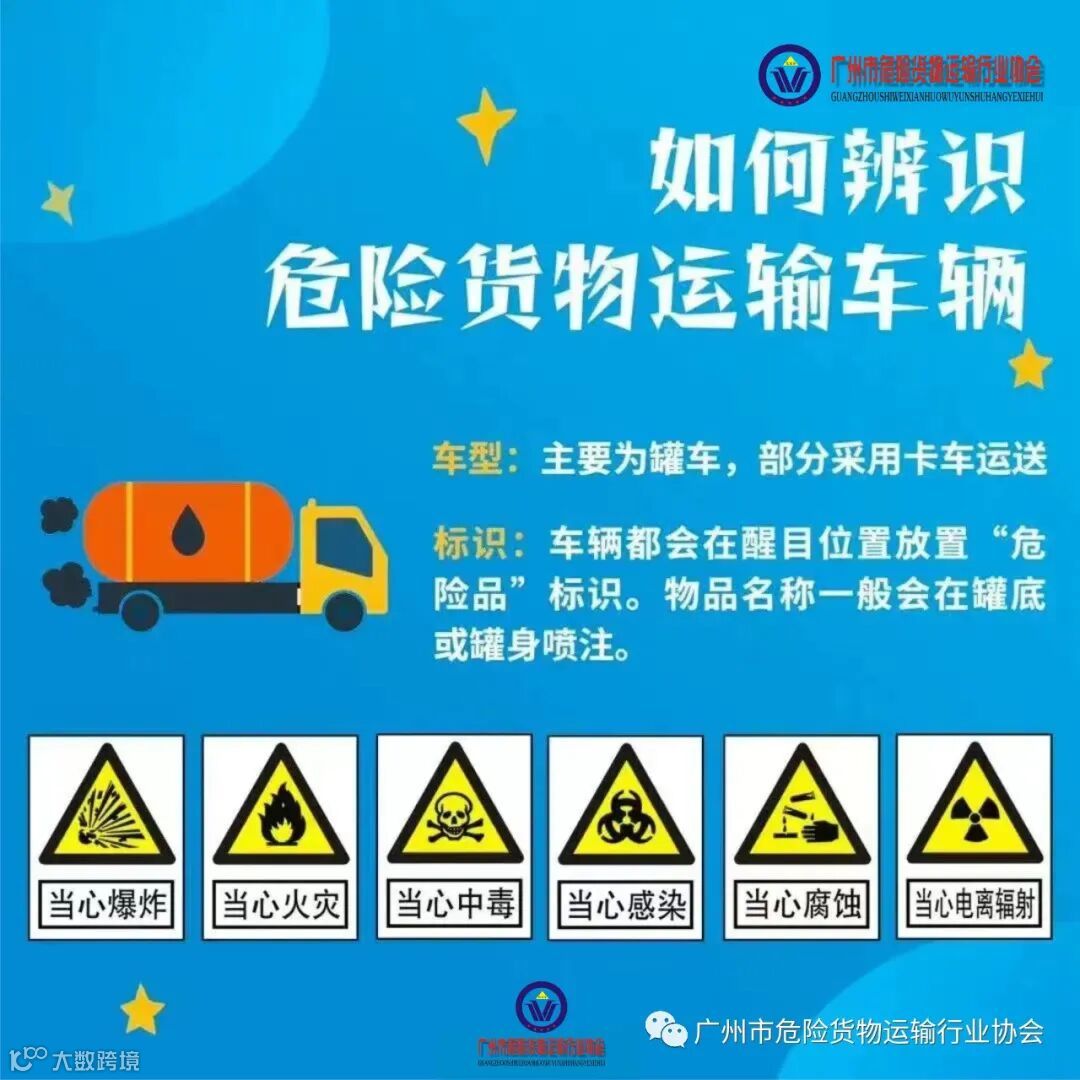 危化品是易燃易爆、有强烈腐蚀性物品的统称,运输上也存在巨大的危险性。如果危化品运输不当或行车途中发生事故,对自己、对周围车辆、人员及环境会造成严重伤害。如何辨识危险货物运输车辆并避让?一起了解一下。