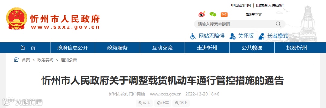 为认真贯彻落实公安部便民服务措施,持续优化改进城市配送货车通行秩序,更好保障物流畅通、服务经济社会发展,优化我市营商环境,根据《中华人民共和国道路交通安全法》《中华人民共和国大气污染防治法》《山西省实施<中华人民共和国道路交通安全法>实施办法》等有关法律法规和山西省公安厅《关于进一步便利货车在城市道路通行的通知》(晋公通字〔2022〕83号)精神,结合我市道路交通管理实际,经研究决定,对忻州市城区货车通行措施进行调整,现通告如下: