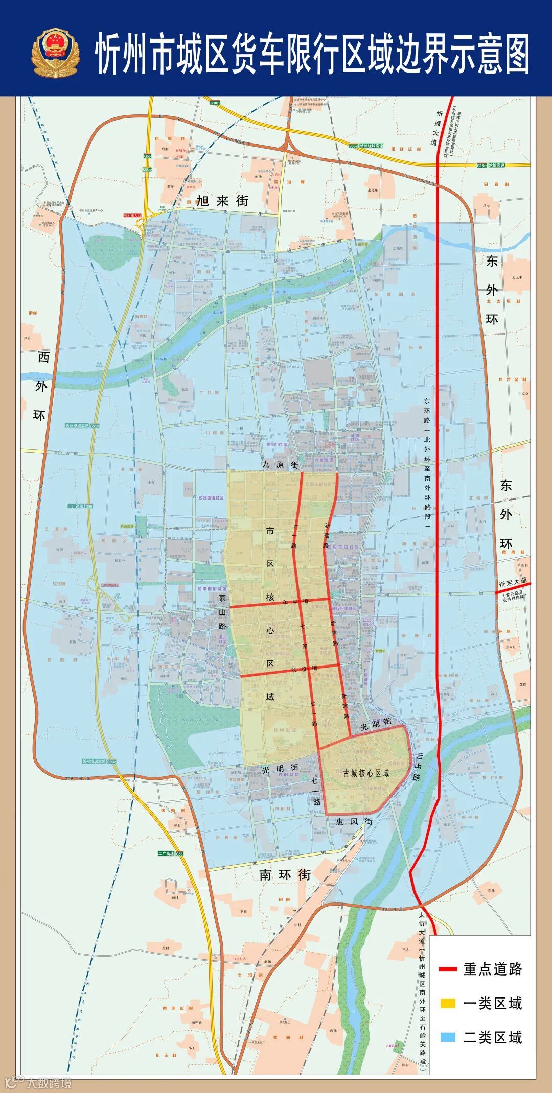 附:忻州市城区货车限行区域边界示意图