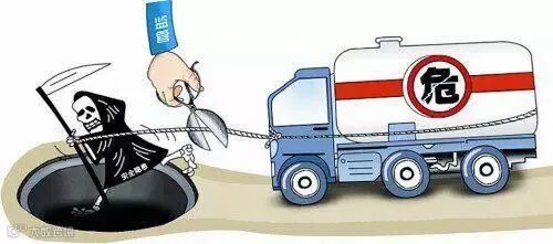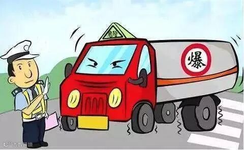 遇危化品运输车,请注意避让,并保持安全车距,切勿争道抢行、强行超车。