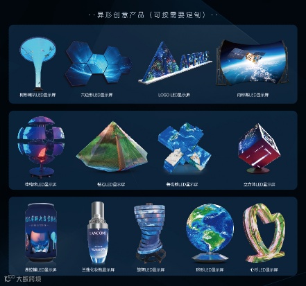康硕展以创意显示闻名业内,产品有球形屏、喇叭屏、易拉罐、内球、魔方、钻石、圆形、三角形、logo字、各类定制异型等。
