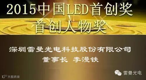 4月23日,“2015年第二届中国LED首创奖”在北京隆重举行。雷曼明星封装产品“非对称节能346”获得“中国LED首创奖金奖”,雷曼董事长兼总裁李漫铁先生荣获“中国LED首创人物奖”。