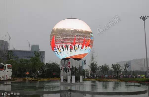 此次山东省第23届运动会开幕式上,康硕展打造的创意LED球形屏 “济宁眼”,是全世界首款户外全彩LED球形显示屏。