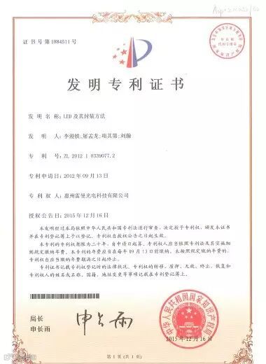 一个企业的科技力量往往能够反映出该企业的硬实力,掌握核心技术的企业也往往能够立于不败之地。一直以来雷曼股份坚持技术创新,近日公司收到国家知识产权通知,其申报的“LED及其封装方法”(ZL201210339077.2)获得国家发明专利授权。而这项专利所保护的就是雷曼股份经过三年研发的核心技术产品——“非对称”直插LED器件。