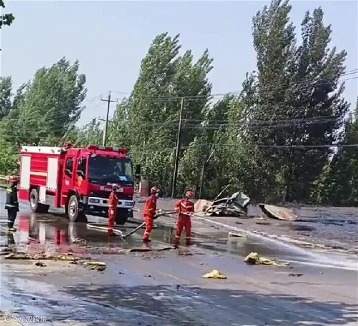 据了解,一辆大货车所载罐体已破碎,车后大片区域被液体浸染,多名消防员手持水管正在对路面进行清洗。工作人员介绍,载有不明化学液体的车辆当时停在路边,驾驶员离开去吃饭了,先是车上罐内气体发生泄漏,强大的气流将罐体撕开一道口子,导致罐内液体泄漏。小编提醒:很多危化品驾驶员都会忽略车辆、罐体等设备的检查工作,出行前不做好全面的准备工作,就要承担粗心大意带来的严重后果,在这里提醒大家,不要用事故的大小来衡量严重性,既然发生了就说明你处于不安全状态!