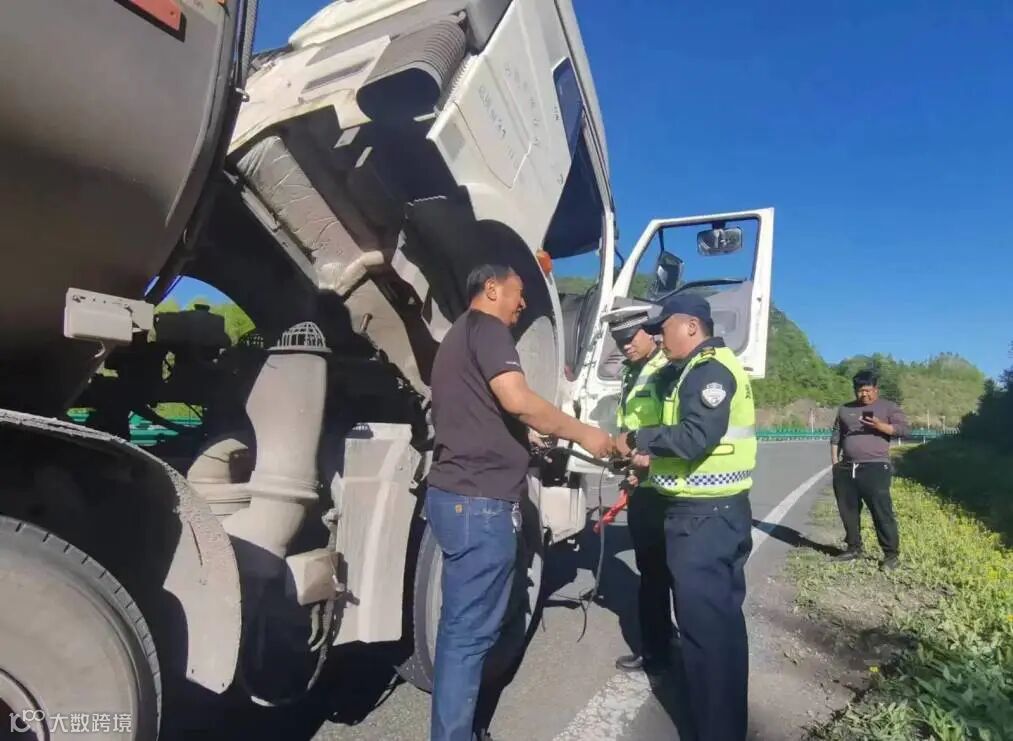 事件:5月16日16时5分,吉林高速公安靖宇分局巡逻长长高速282公里处,发现有一辆危化品运输车打着危险报警闪光灯停在应急车道上。