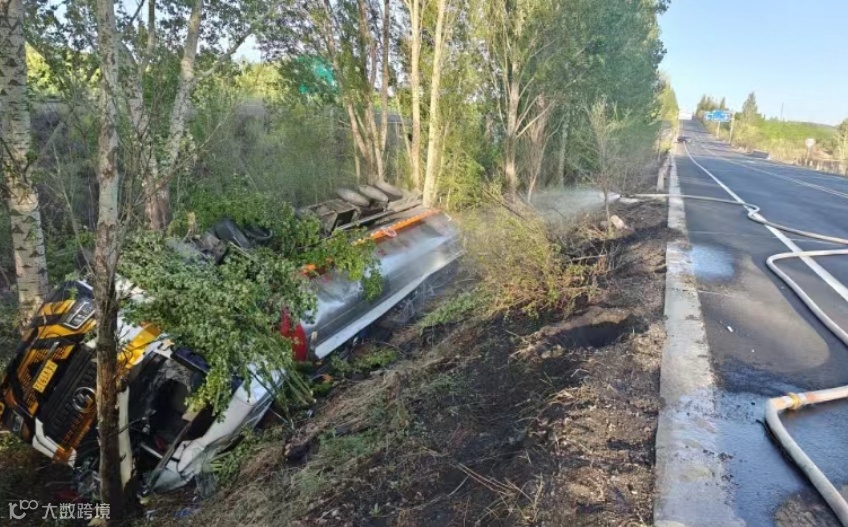 内蒙古一甲醇槽罐车侧翻液体泄漏