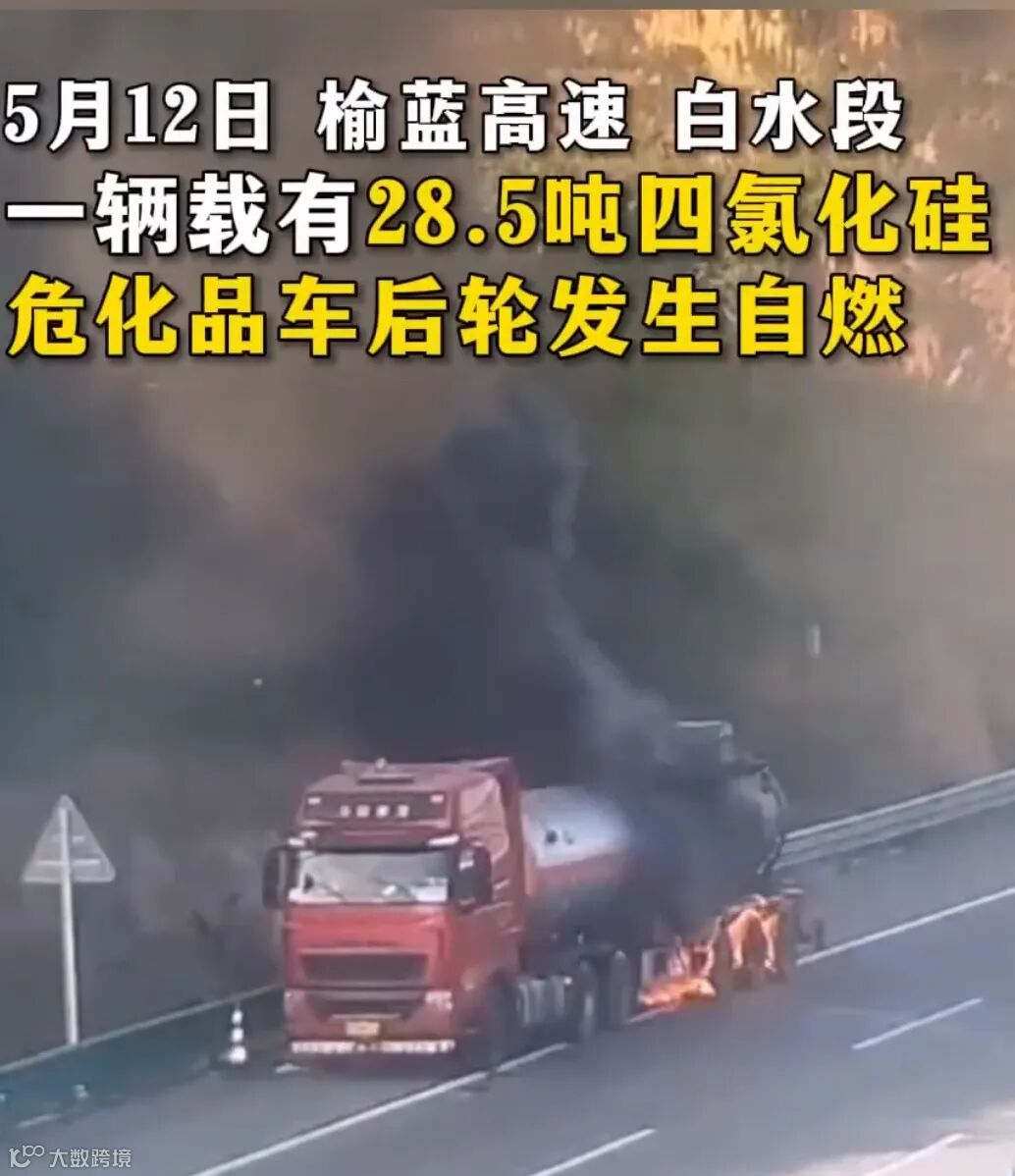 陕西高速一满载28.5吨危化品车辆发生自燃