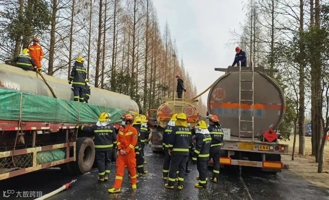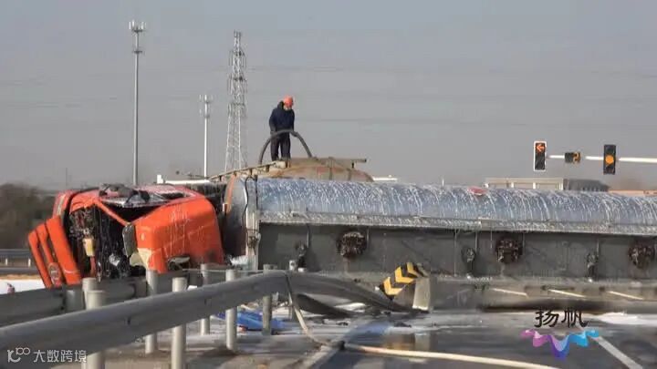 事件:1月1日上午7时54分左右,江苏扬州境内发生一起油罐车侧翻事故,罐体内的燃油发生泄漏。
