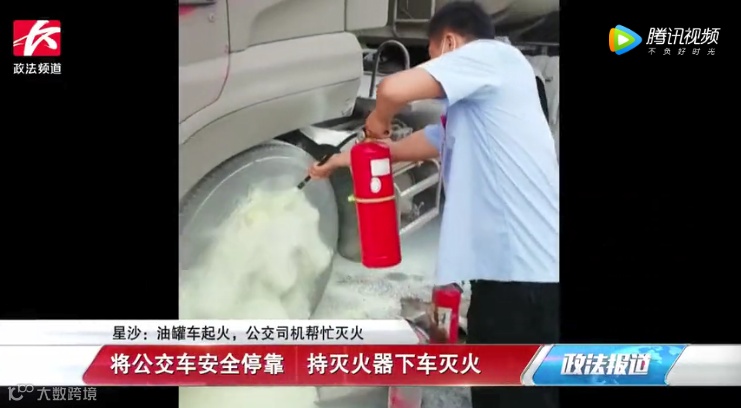 油罐车突发火情公交驾驶员见义勇为