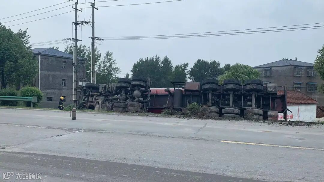 湖北枣阳一30吨甲醇罐车侧翻