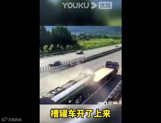 长深高速一槽罐车追尾低速半挂车
