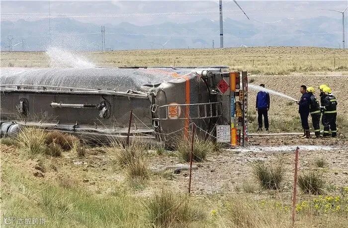 青海海南州32.4吨油罐车侧翻