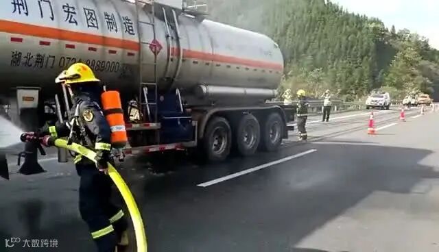 杭长高速一危化品运输车着火