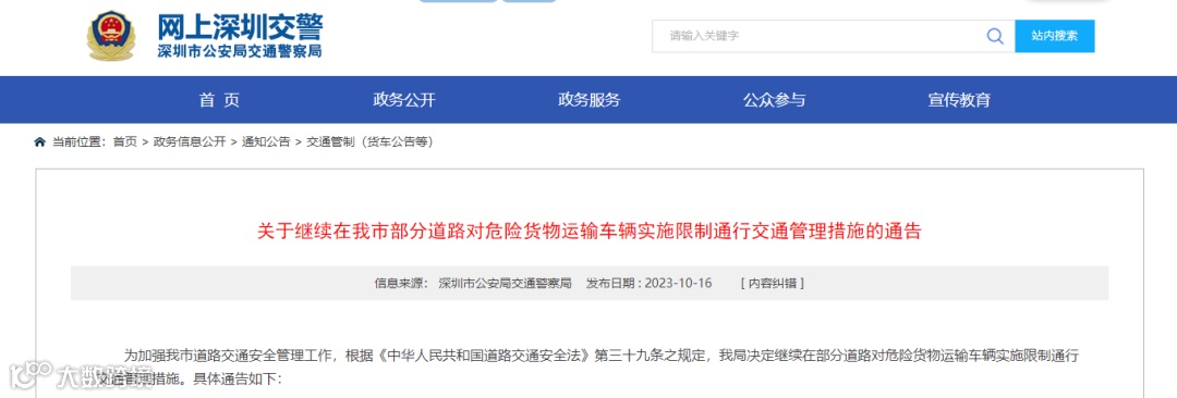 七、在深圳通行的危险货物运输车辆除需遵守本通告规定外,还需遵守《广东省公安厅、广东省生态环境厅、广东省交通运输厅、广东省应急管理厅、广东省市场监督管理局关于危险货物运输车辆限时禁行高速公路的通告》(粤公规〔2021〕3 号)中全省高速公路每天0时至6时禁止危险货物运输车辆通行的措施。