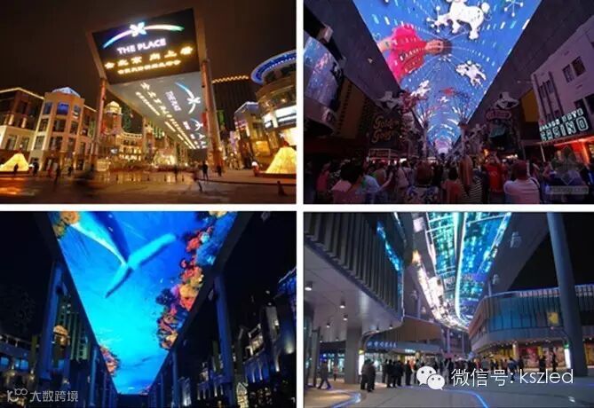 LED天幕,就是利用现代光学显示技术和先进的LED研发生产技术,把成千上万颗的LED(发光二极管)组成一个可以显示视频、图像、文字等信息的图文显示设备。它吊装在建筑物的天花顶上,起到渲染、装饰、亮化效果。一般适用于高档星级酒店大堂、大型shopping mall、商业步行街、城市中心广场、大型舞台等大型建筑天花顶上,面积大、重量轻、形状各异。“LED天幕”系统在设计上拥有炫彩的LED显示,配以三维声像扩声系统,完美的做到了影像—声音同步。吊装在天花顶上的大型LED天幕屏宛如一条色彩艳丽的绸缎、明亮深邃的天空,再配合以新型LED灯条、灯带、射灯等照明设备,起到一亮化、渲染作用。置身其中给人以视觉冲击力强的震撼视觉和听觉体验,成为高大上室内显示屏,与建筑物浑然天成,溶为一体。在LED天幕的经典案例当中,以北京世贸天阶购物中心、拉斯维加斯弗雷蒙特街天幕、苏州圆融时代广场天幕和西安秦汉唐广场天幕最具代表性。