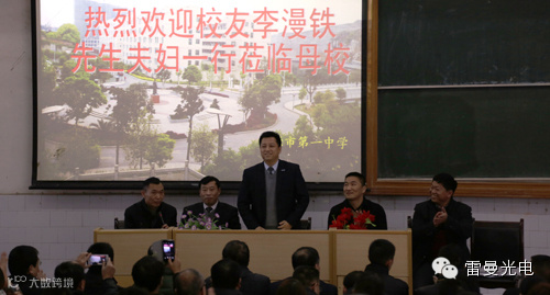 12月28日下午,涟源一中在科学楼阶梯教室举行首届“漫铁园丁奖”颁奖大会暨《民族复兴与中学教育》讲座。涟源一中高180班校友、深圳雷曼光电科技股份有限公司董事长兼总裁李漫铁一行,市人民政府副市长聂志坚,市教育局负责人及涟源一中全体教职员工240多人参加了大会。