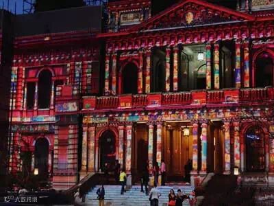夜色中的悉尼市政厅色彩斑斓的灯光秀
