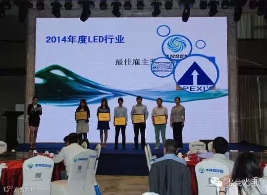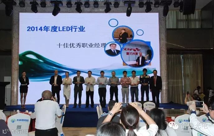 协会对2014年度在行业做出突出贡献的企业及优秀个人进行了表彰。雷曼光电控股子公司康硕展荣获“2014年度LED行业最佳示范应用奖”、同时凭借山东济宁奥体中心球形显示屏项目获得“2014年度深圳中小企业LED行业最佳雇主奖”,雷曼光电体育事业部张雪松总经理凭借过去在跨界营销与中超中甲足球联赛的合作荣获“2014年度LED行业十佳优秀职业经理人”。