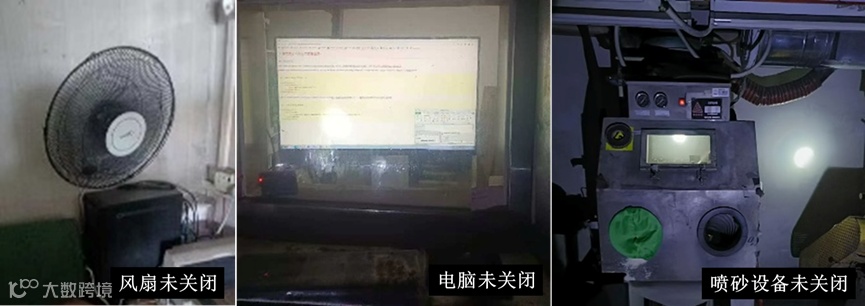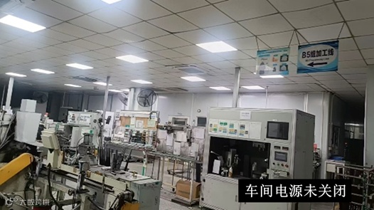 电脑、风扇等办公设备未及时关闭电源,车间也有生产设备未关闭,长时间通电可能引发过热等安全隐患,同时也增加了电力消耗。
