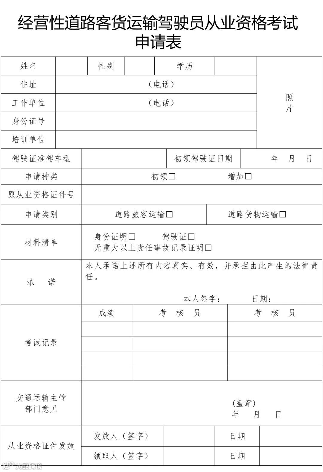 第十五条 申请参加经营性道路客货运输驾驶员从业资格考试的人员,应当向其户籍地或者暂住地设区的市级交通运输主管部门提出申请,填写《经营性道路客货运输驾驶员从业资格考试申请表》(式样见附件1),并提供下列材料: