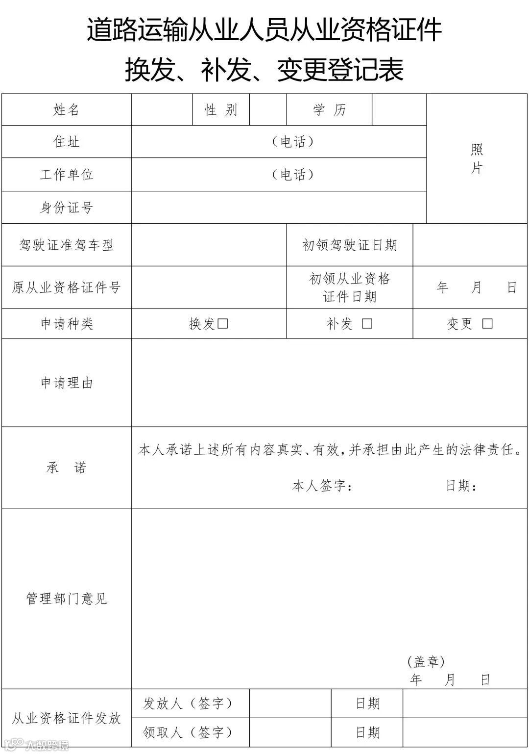 道路运输从业人员从业资格证件换发、补发、变更登记表