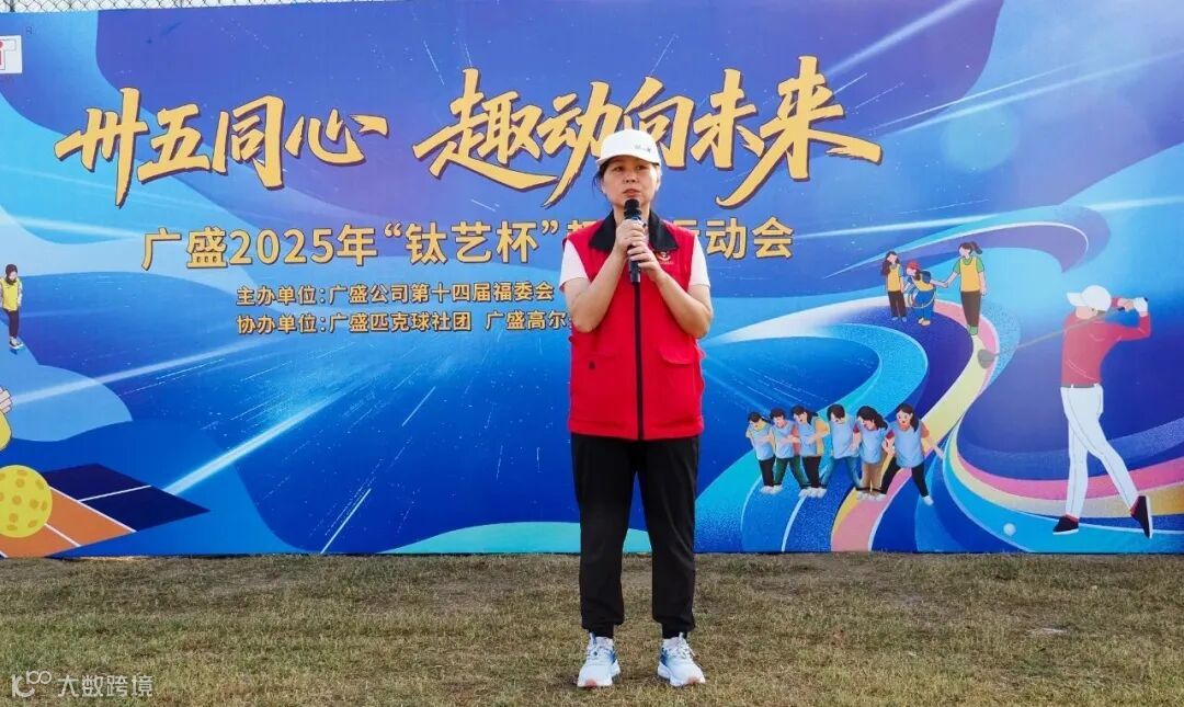 广盛福委会总干事胡金波发表了热情洋溢的讲话,她表示:“趣味运动会是公司文化的重要组成部分,不仅是释放压力、愉悦身心的平台,更是凝聚团队力量、激发奋斗热情的契机。希望大家在赛场上赛出风格、赛出友谊,把运动中的协作精神带回工作岗位,共同推动广盛发展!”