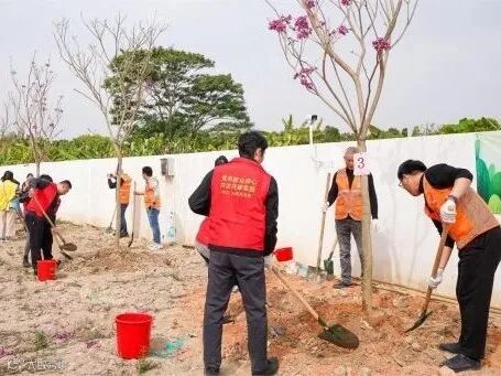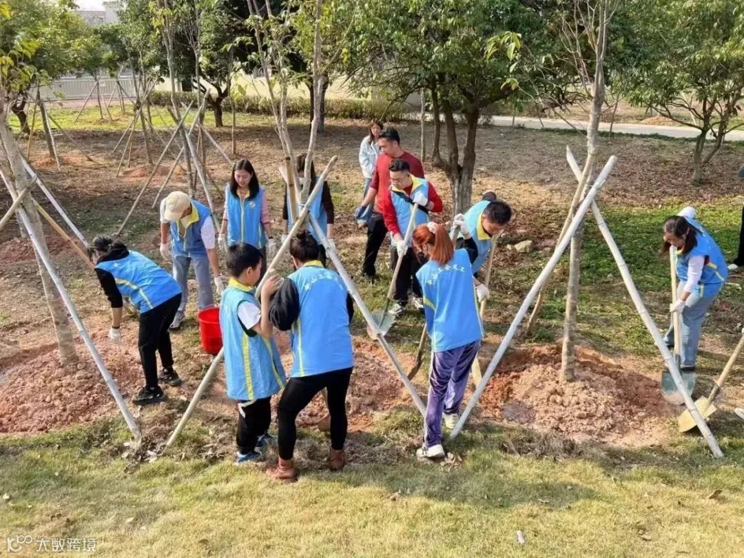 大家分工合作,热情高涨,干劲十足,纷纷撸起袖子、拿起锄头、挥起铁锹,搬苗扶苗、铲土回填、踩实浇水,确保栽一棵活一棵,植一片绿一方。