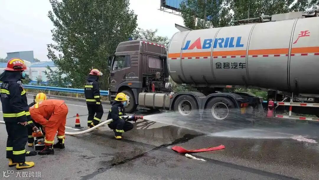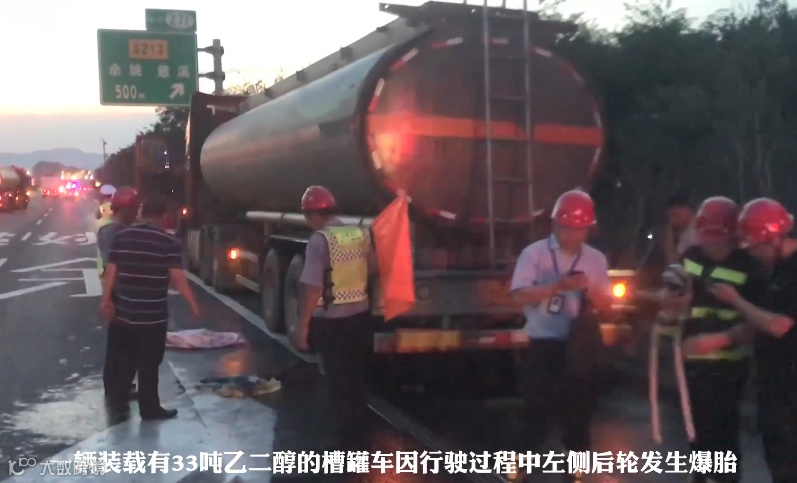 广州市危险货物运输行业协会临高速33吨乙二醇槽罐车发生泄露
