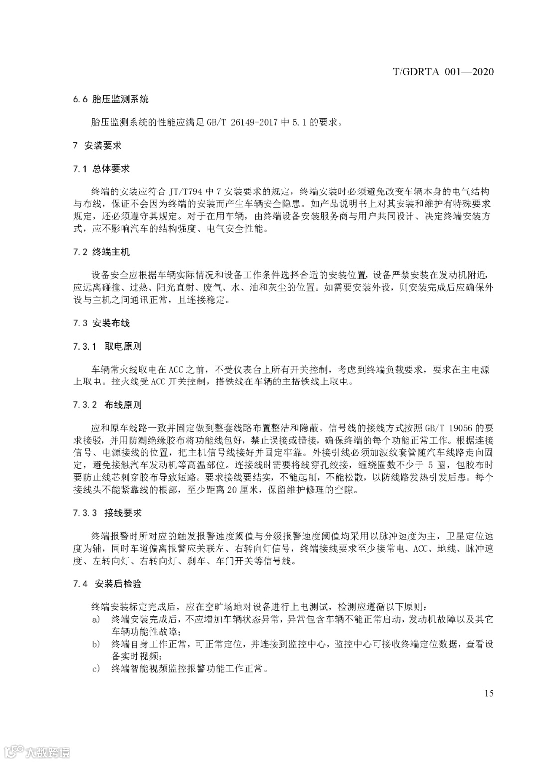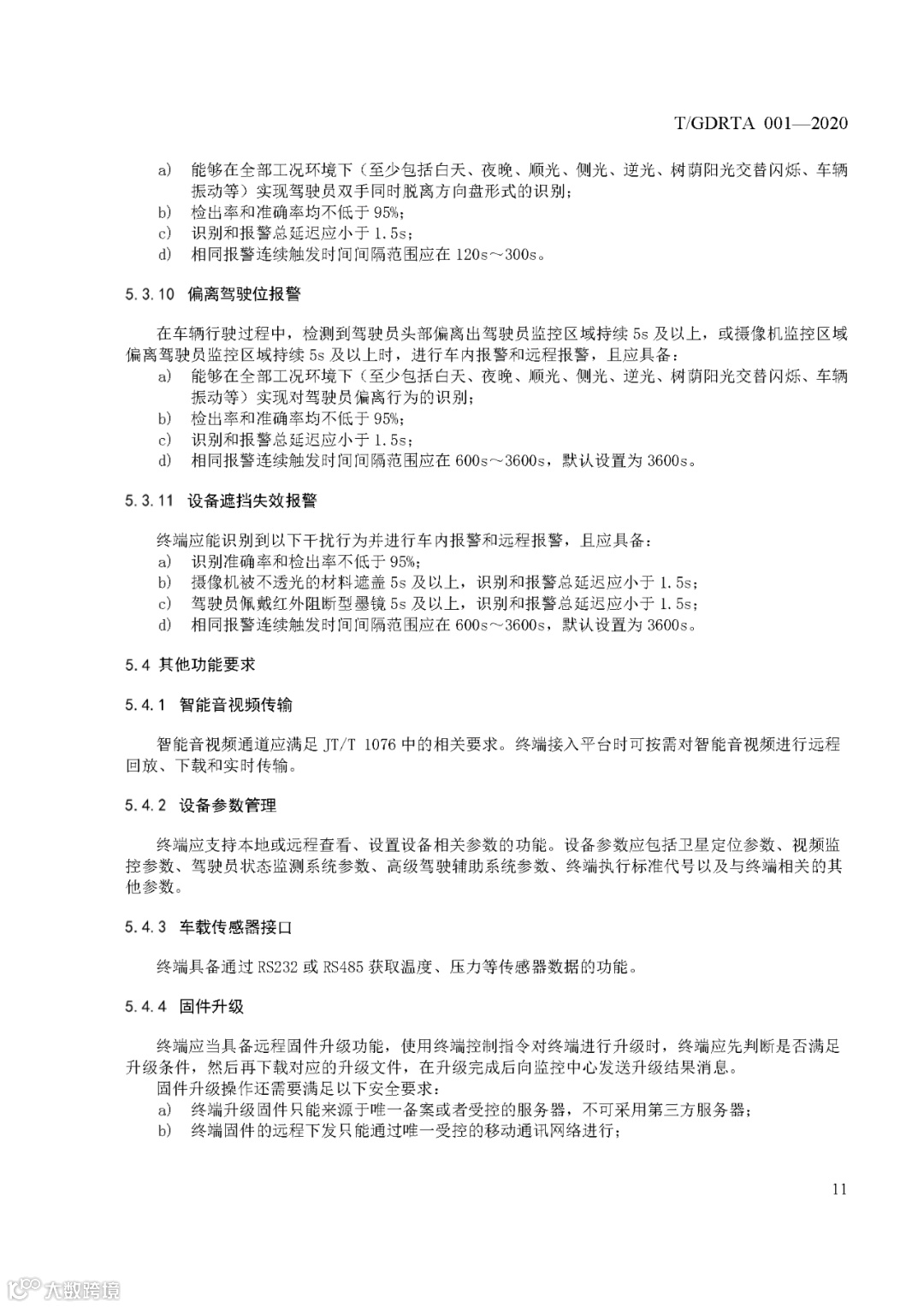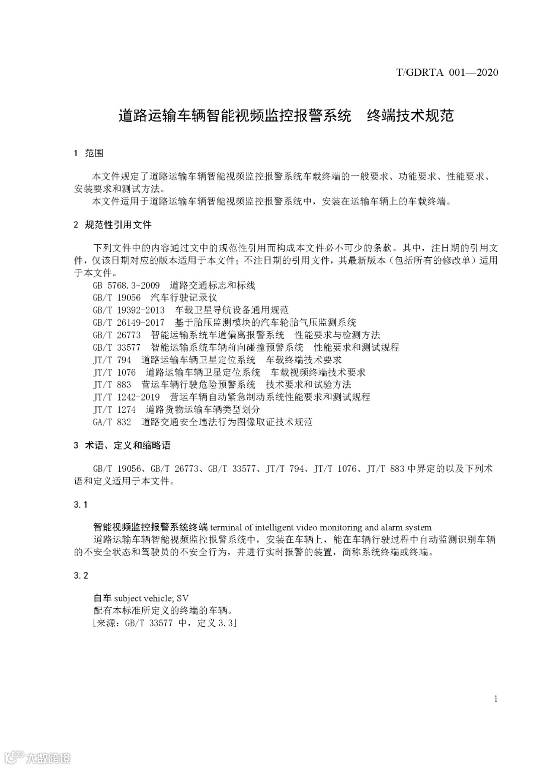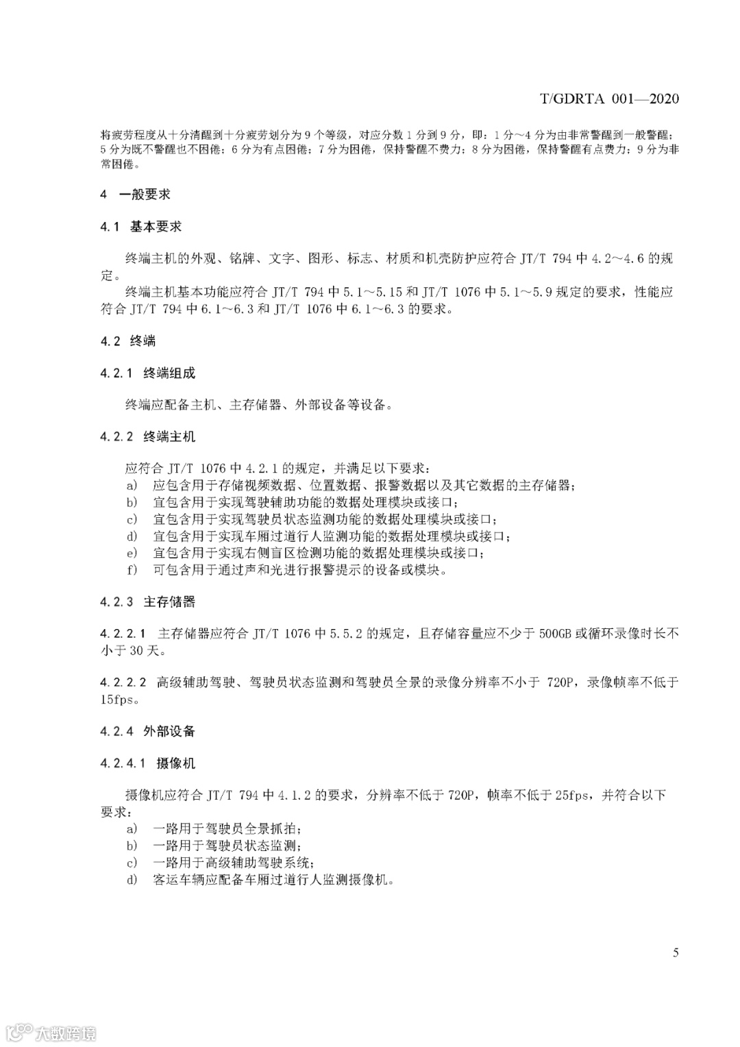 《道路运输车辆智能视频监控报警系统 终端技术规范》