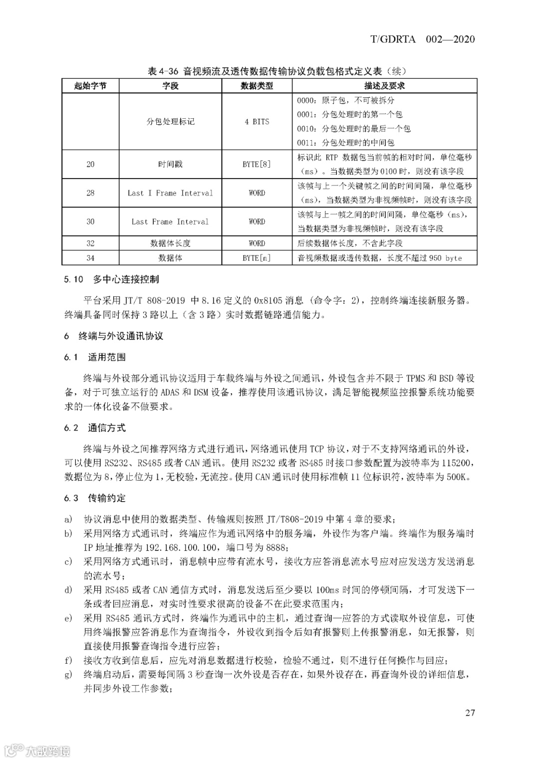 《道路运输车辆智能视频监控报警系统 通讯协议规范》