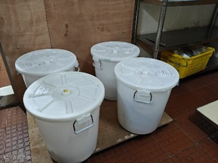 改善后:通过塑料桶将粮食进行密封存放