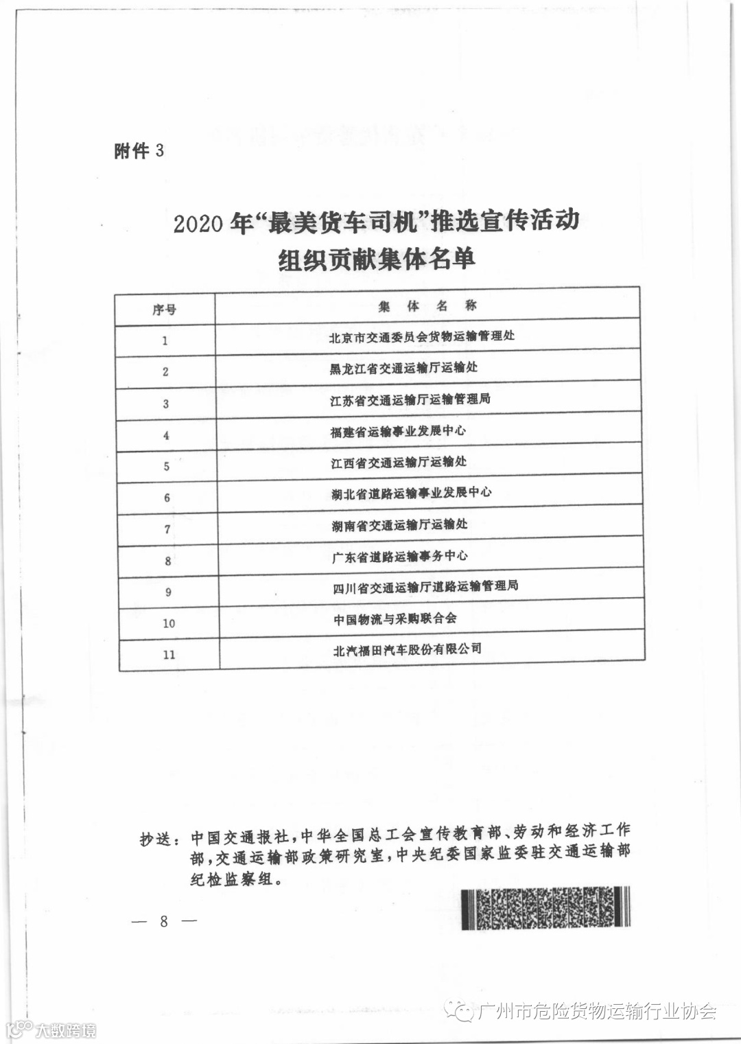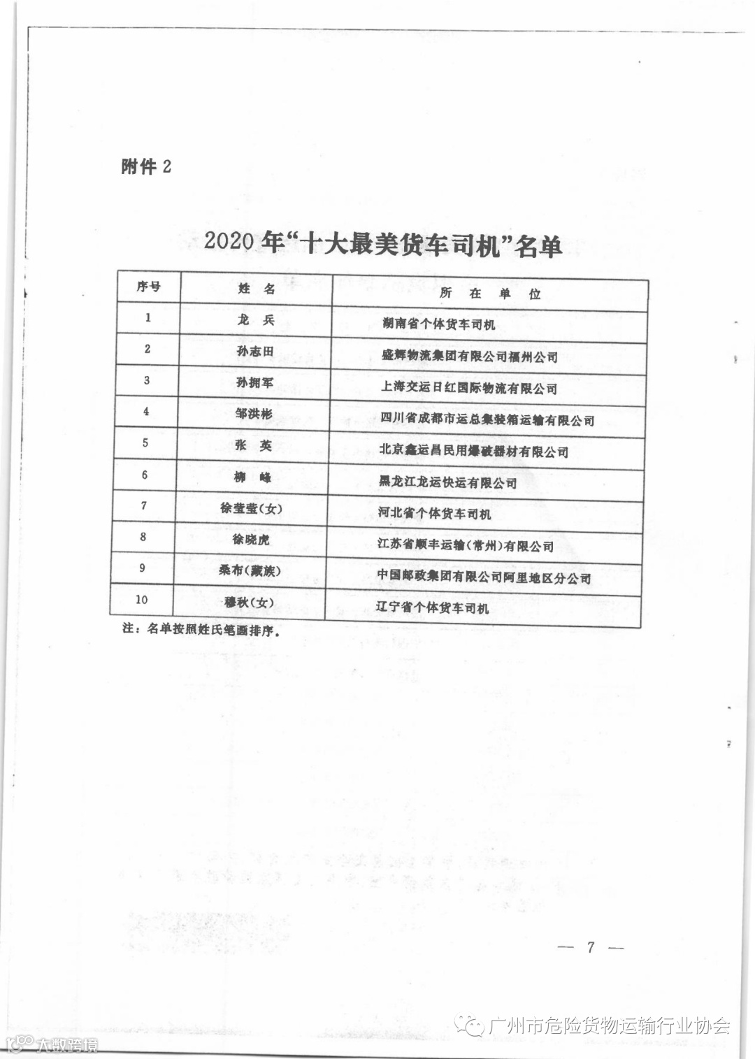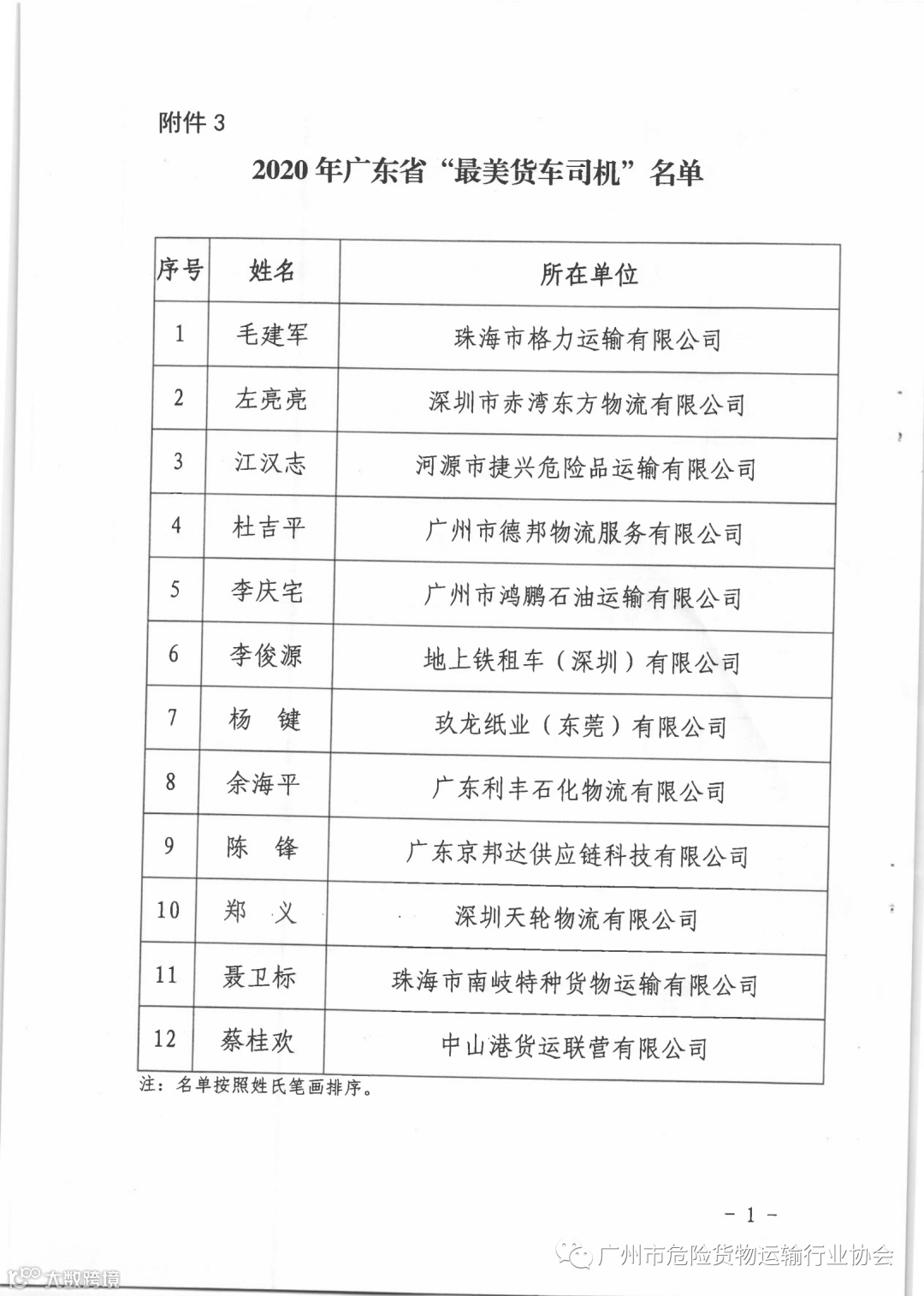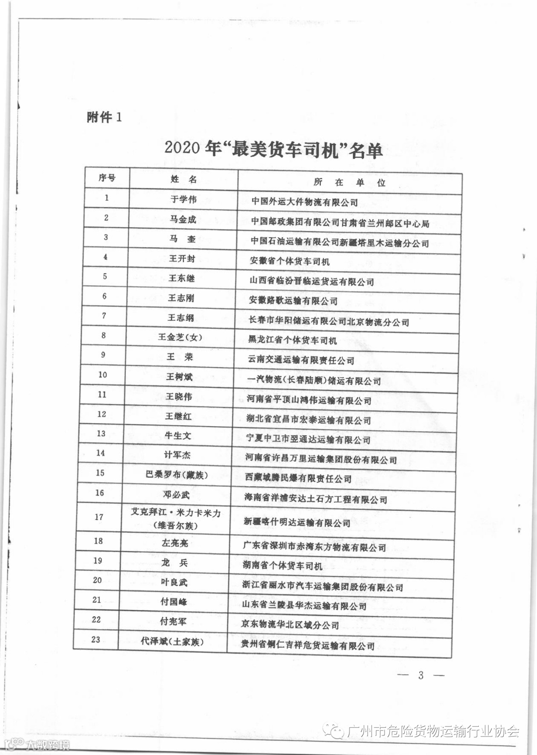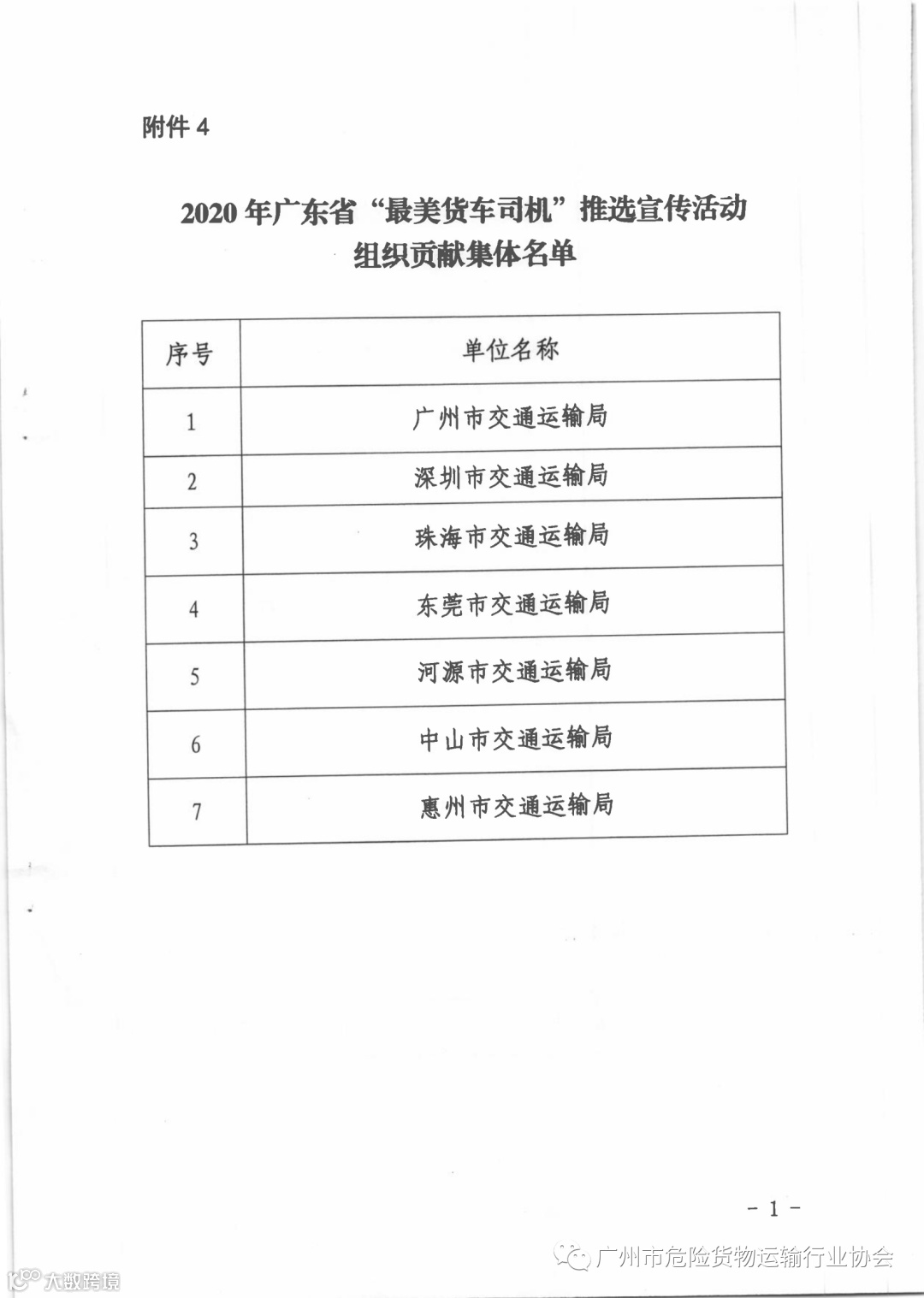关于公布2020年广东省“最美货车司机”等名单的通知
