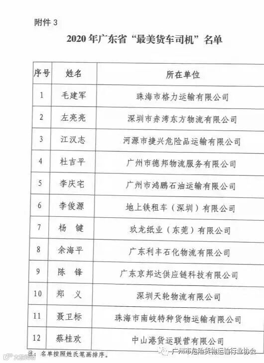 导读:关于公布2020年广东省“最美货车司机”等名单的通知