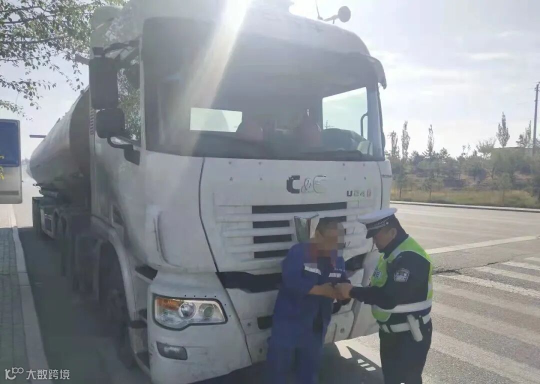 事件:9月27日9时27分,内蒙古自治区鄂尔多斯市东胜公安交管大队罕台中队民警巡逻至109国道756公里加10米处道路时,发现一辆危险化学品运输车辆不按规定车道行驶,民警立刻将其拦停进行检查教育。