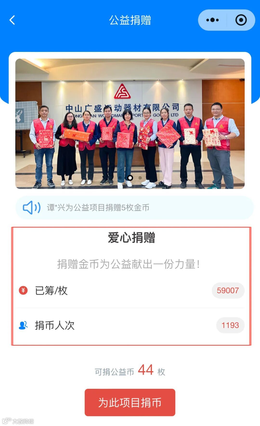 运动金币兑换完成后,剩余积分将用于公益捐赠,共计捐赠超5.9万积分,捐款将用于支持我们的志愿者服务队开展的各项公益慰问和探访服务。