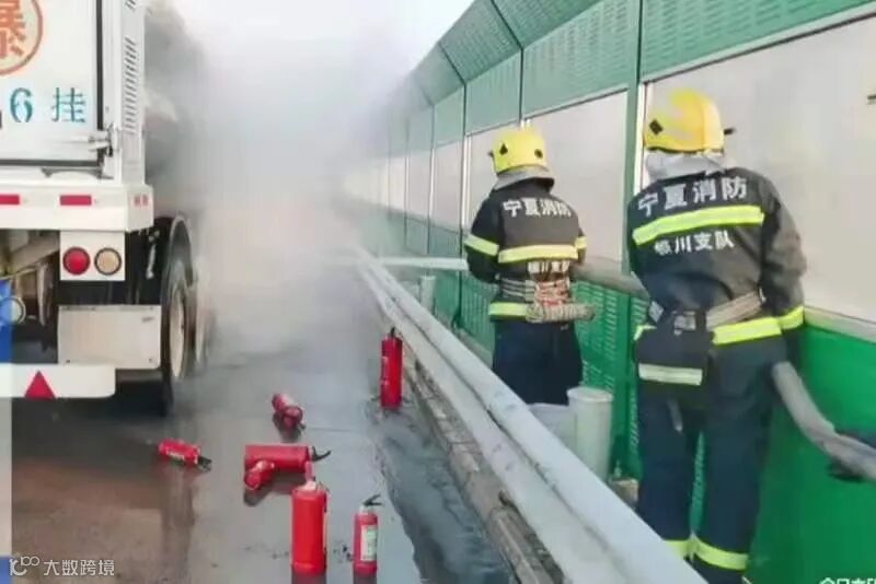 京藏高速银川段一槽罐车轮胎起火