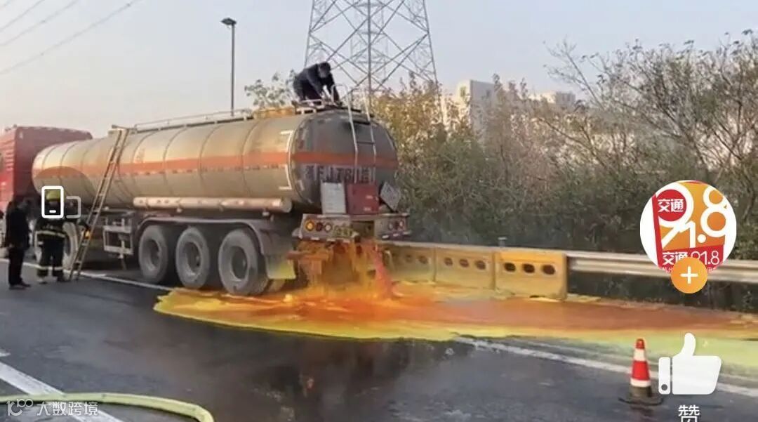 杭州绕城高速一槽罐车泄漏