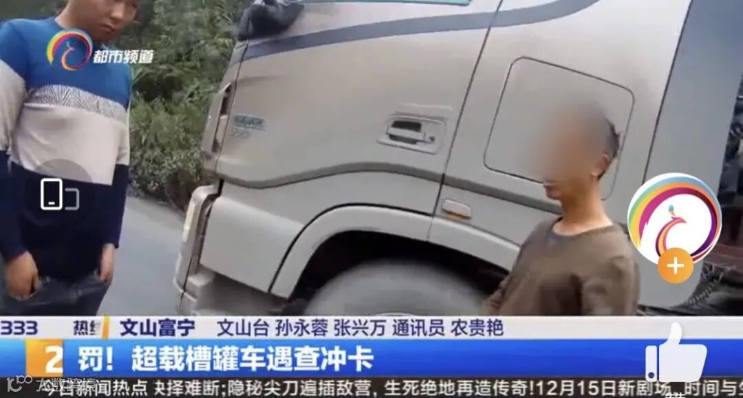 云南富宁一槽罐车超载冲卡被抓