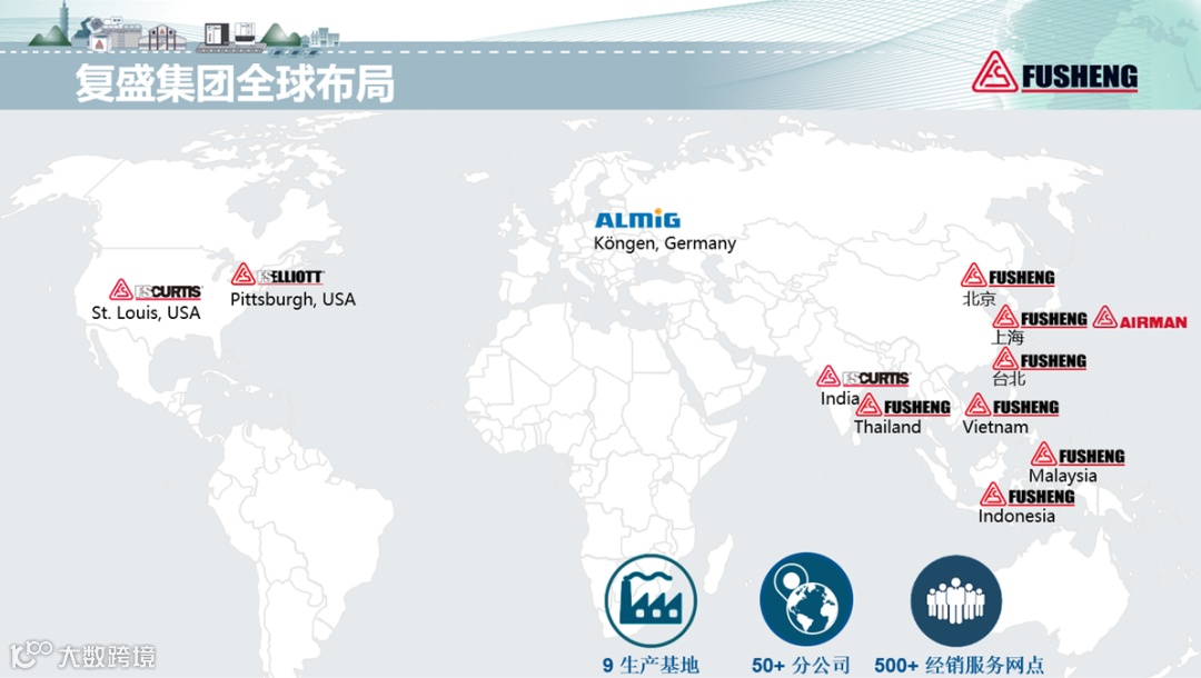 复盛公司自1953年成立以来,横跨70载,规模逐步扩展至东南亚、美国、欧洲,成为布局全球的跨国性压缩机制造集团。