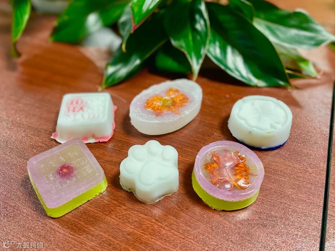 看着自己亲手制作的色彩缤纷,形状各异的手工皂成品,大家都成就感十足,纷纷展示着自己制作的手工皂并拍照留念。