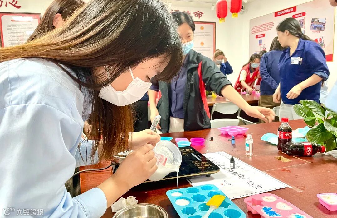 手工皂制作简单易学,挑选皂基、食用色素、花瓣、精油......30位同仁根据自己的喜好加入各种香味和色素,尽情释放自己的创意和灵感,在这个闲适的时光,静心享受创“皂”的快乐。