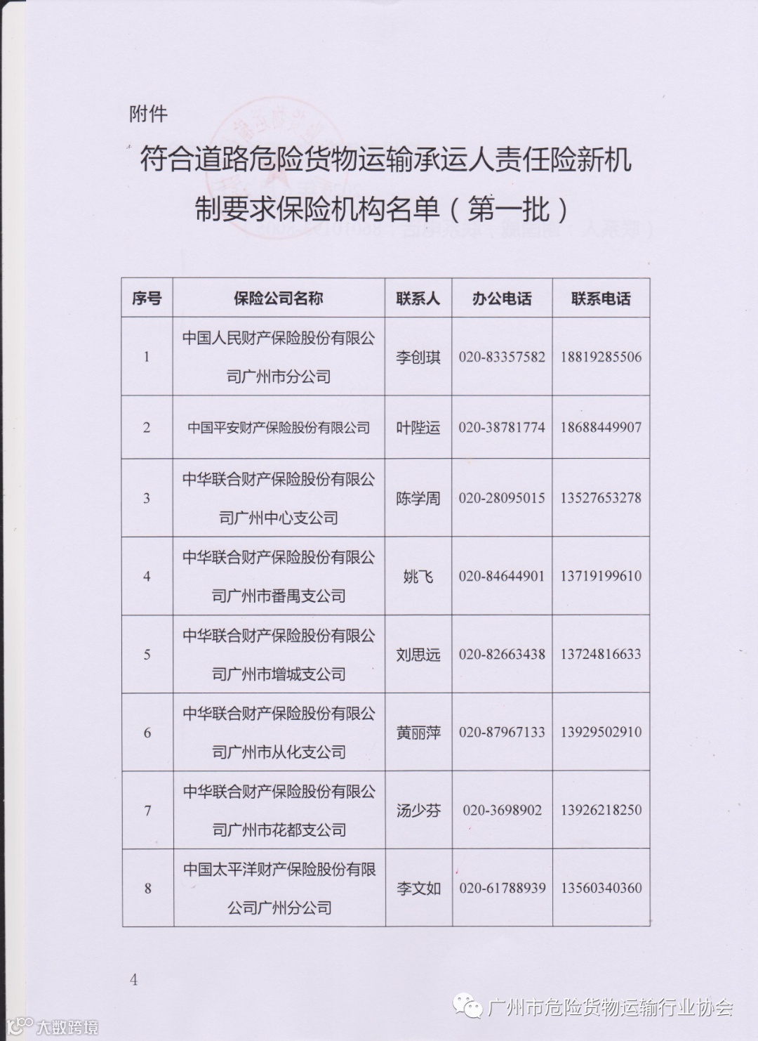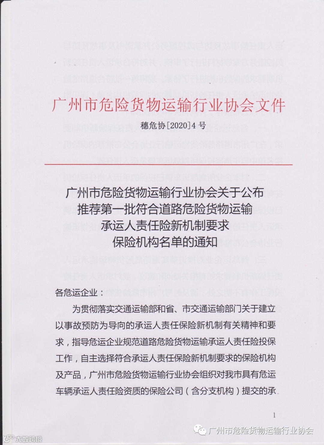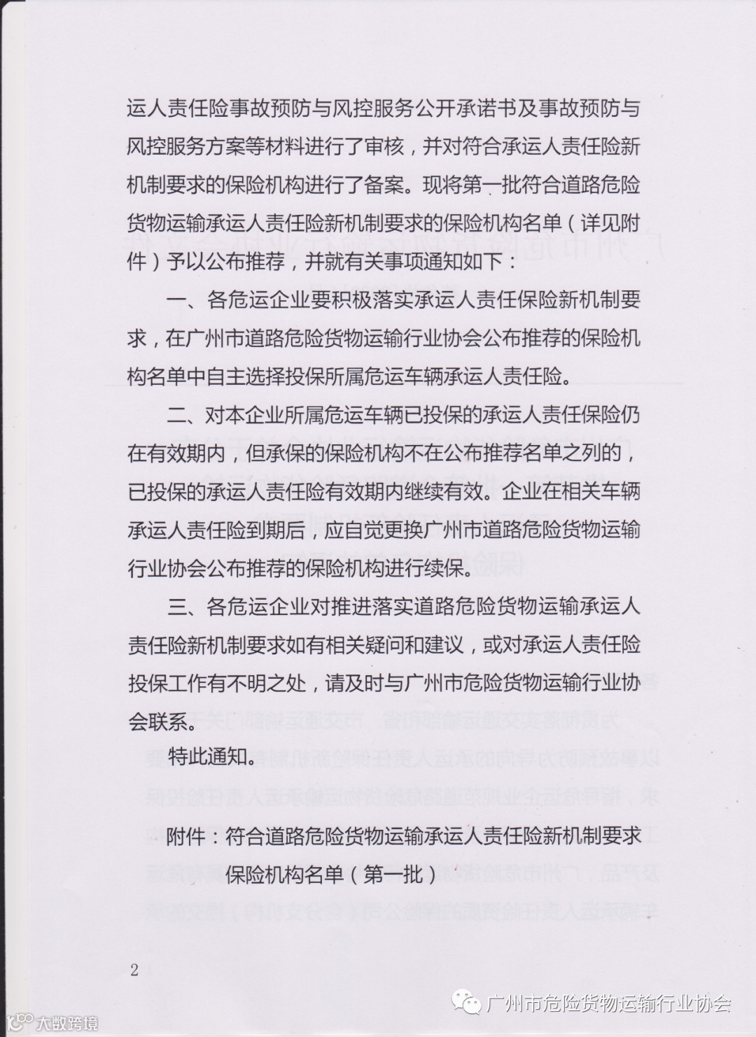 关于公布第一批符合道路危险货物运输承运人责任险新机制
