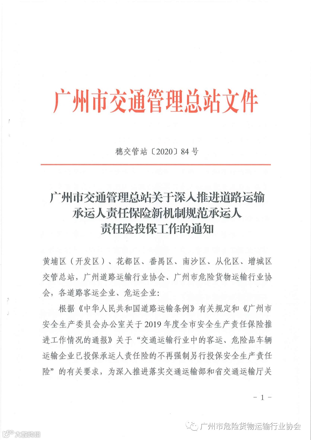 导读:关于深入推进道路运输承运人责任保险新机制规范承运人责任险投保工作的通知