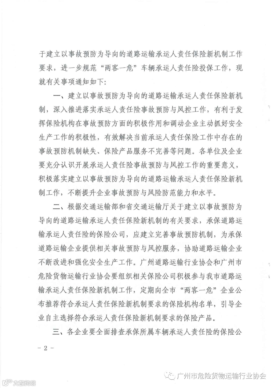 关于深入推进道路运输承运人责任保险新机制规范承运人责任险投保工作的通知