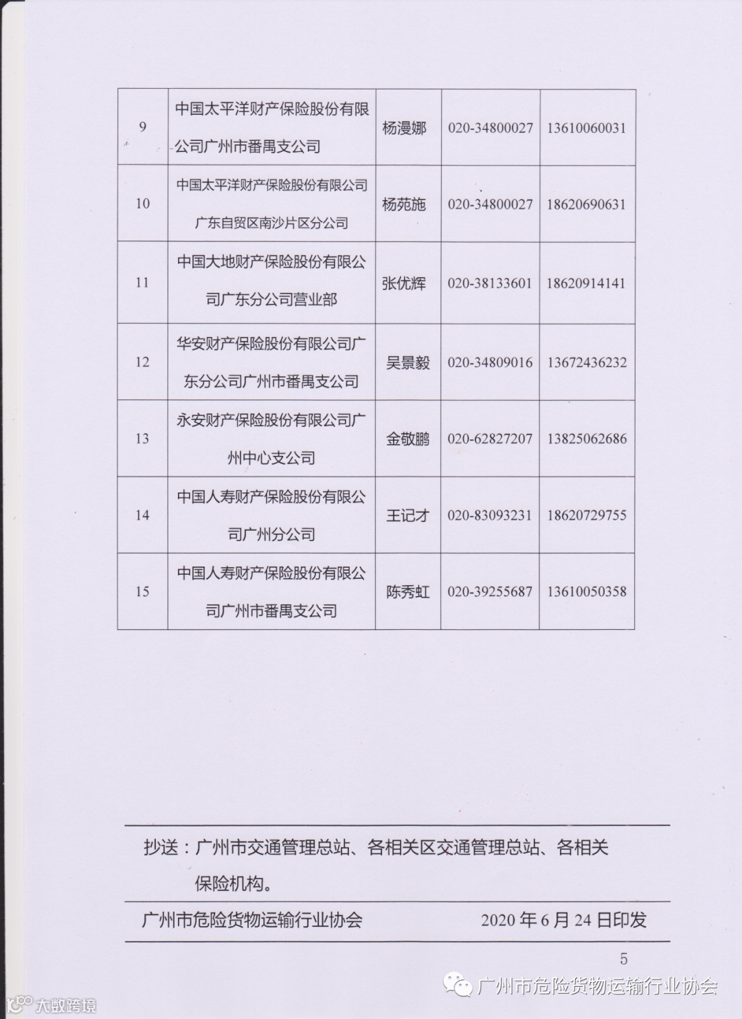 保险机构名单的通知