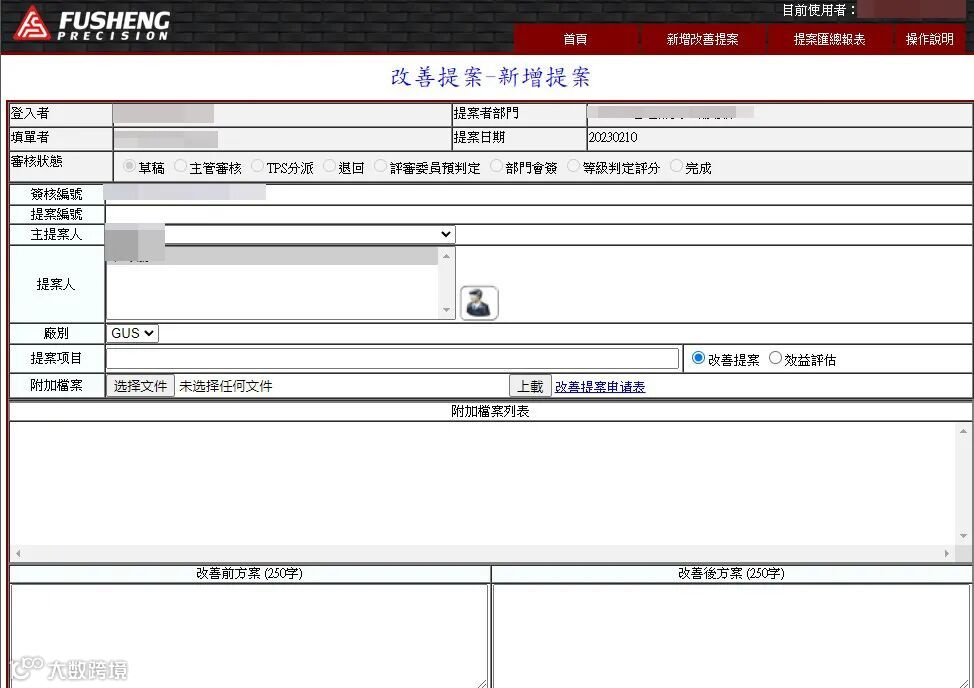 操作方法:实施创意构想或自行进行提案改善→产生效益→公司网页→提案签核系统→填写→上呈
