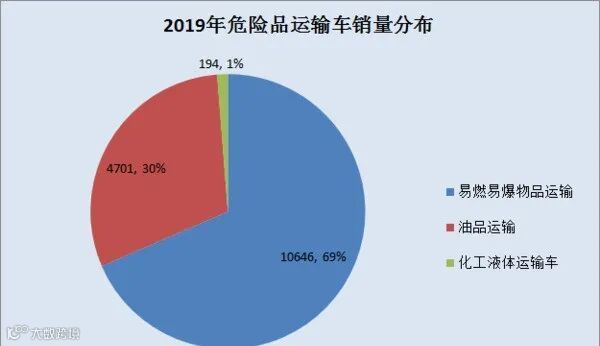 从2019年销量数据来看,危险品运输车市场规模在1.5万台左右,其中易燃易爆物品类运输车销量超过1万台,市场份额高达69%,是危险品运输车中的绝对主力。