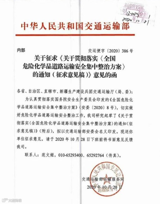 近日,交通部下发了落实该”整治方案“的征求意见函。结合这两份文件及《全国安全生产专项整治三年行动计划》和《道路运输安全专项整治三年行动实施方案》,我们可以看出今后危险品运输监管的方向。