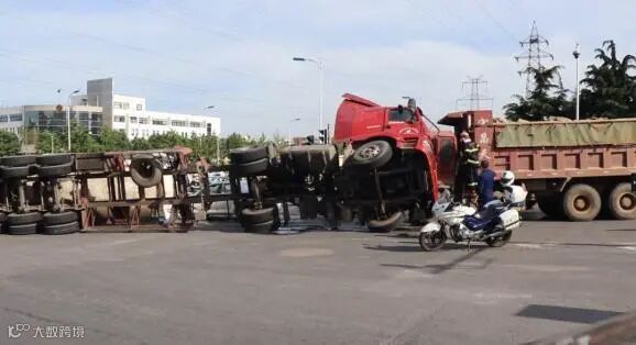 大连一油罐车和运砂车相撞